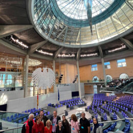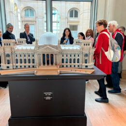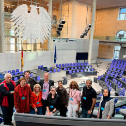 Am zweiten Tag erhielten die Ehrenamtlichen eine Führung im Deutschen Bundestag, die einen Einblick in das Wirken des Parlaments und der demokratischen Institutionen gab. Die Akteure leisten jedoch auch selbst einen wichtigen Beitrag zum gesellschaftlichen Zusammenhalt. Ohne die aktive Mitwirkung der Menschen gibt es keine lebendige Demokratie! Bei strahlendem Sonnenschein ließen die Eingeladenen von der Reichstagskuppel den Blick über Berlin schweifen. Ein Spaziergang zum Brandenburger Tor und ein gemeinsames Mittagessen beschlossen die gemeinsame Zeit. Alle haben sich über den Austausch sehr gefreut und fuhren frisch motiviert zurück an die Projektstandorte.