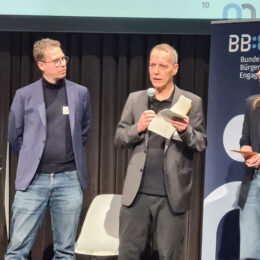 Zunächst nahmen die Engagierten am Fachkongress im Bundesprogramm „Menschen stärken Menschen“ teil, den das Bundesnetzwerk Bürgerschaftliches Engagement ausrichtete. Dort nahmen sie interessante Impulse mit und gaben zugleich selbst Einblick in ihre praktische Arbeit vor Ort. In einem von Projektleiter Erik Rahn moderierten Workshop ging es um das Miteinander der Generationen und darum, welche Rolle die Kompetenzen der Älteren dabei spielen. Der BaS-Vorsitzende Franz-Ludwig Blömker nutzte die Gelegenheit, die Beteiligten kennen zu lernen und für ihren Einsatz zu danken. Der erste Tag wurde beschlossen von einem gemeinsamen Abendessen und einem Gespräch mit dem Bundestagsabgeordneten Dirk Wiese. Dieser würdigte das wichtige Engagement in den Patenschaften, das Vielen den Zugang zu Bildung und Arbeit erst ermöglicht. Er will sich für den Fortbestand des Bundesprogramms einsetzen.