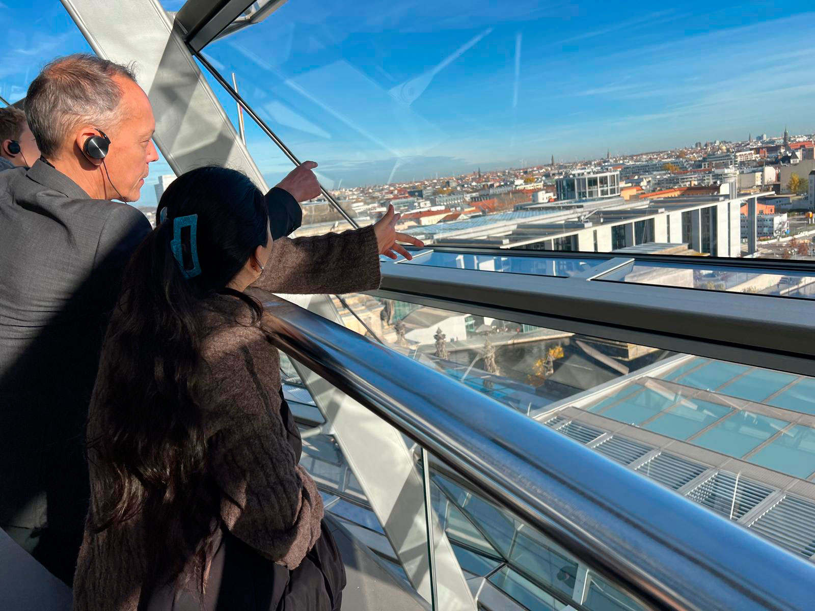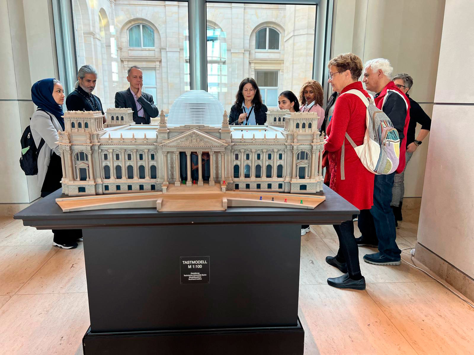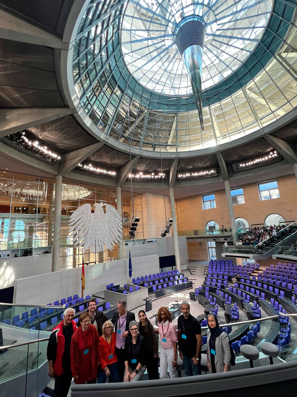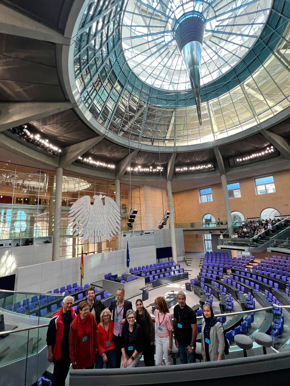 Am zweiten Tag erhielten die Ehrenamtlichen eine Führung im Deutschen Bundestag, die einen Einblick in das Wirken des Parlaments und der demokratischen Institutionen gab. Die Akteure leisten jedoch auch selbst einen wichtigen Beitrag zum gesellschaftlichen Zusammenhalt. Ohne die aktive Mitwirkung der Menschen gibt es keine lebendige Demokratie! Bei strahlendem Sonnenschein ließen die Eingeladenen von der Reichstagskuppel den Blick über Berlin schweifen. Ein Spaziergang zum Brandenburger Tor und ein gemeinsames Mittagessen beschlossen die gemeinsame Zeit. Alle haben sich über den Austausch sehr gefreut und fuhren frisch motiviert zurück an die Projektstandorte.