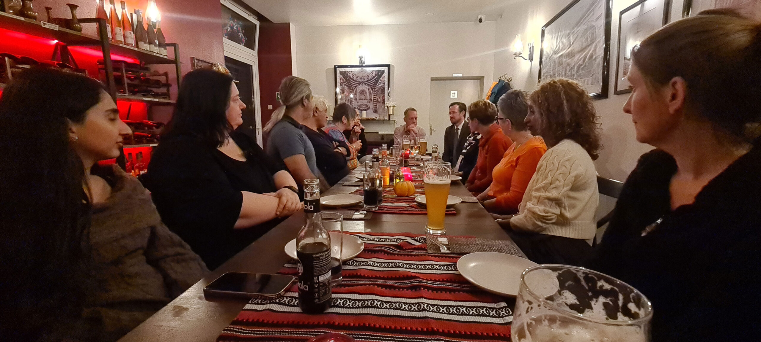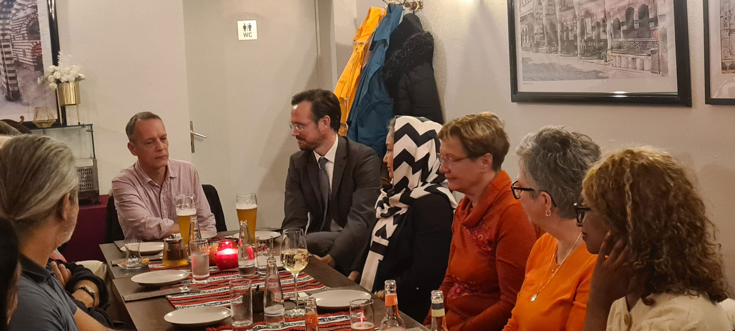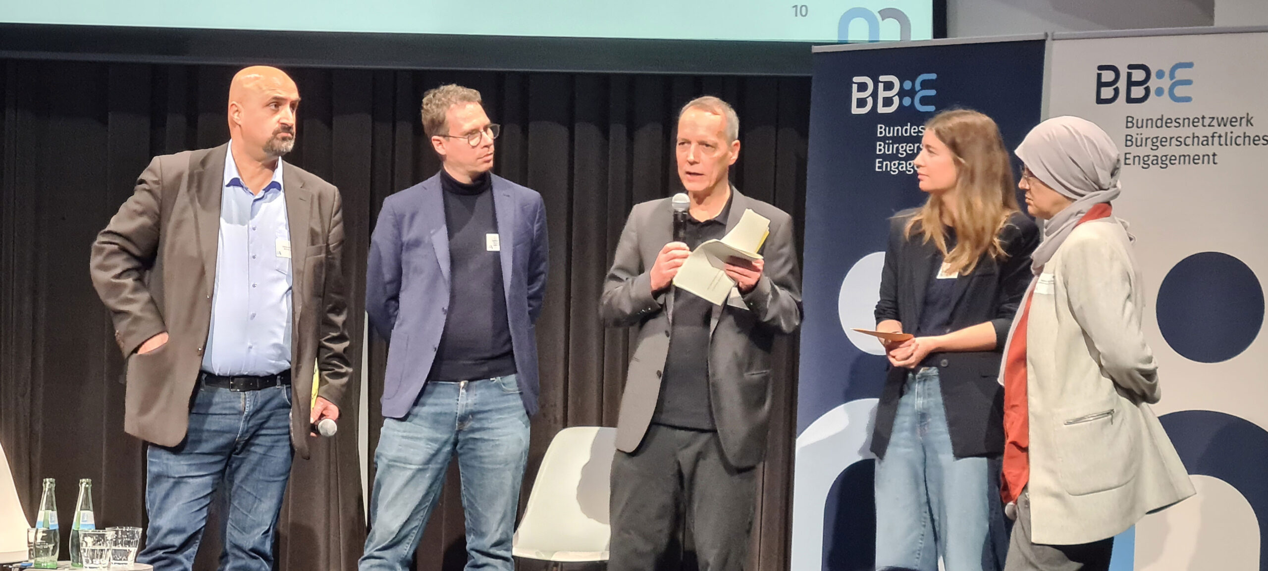 Zunächst nahmen die Engagierten am Fachkongress im Bundesprogramm „Menschen stärken Menschen“ teil, den das Bundesnetzwerk Bürgerschaftliches Engagement ausrichtete. Dort nahmen sie interessante Impulse mit und gaben zugleich selbst Einblick in ihre praktische Arbeit vor Ort. In einem von Projektleiter Erik Rahn moderierten Workshop ging es um das Miteinander der Generationen und darum, welche Rolle die Kompetenzen der Älteren dabei spielen. Der BaS-Vorsitzende Franz-Ludwig Blömker nutzte die Gelegenheit, die Beteiligten kennen zu lernen und für ihren Einsatz zu danken. Der erste Tag wurde beschlossen von einem gemeinsamen Abendessen und einem Gespräch mit dem Bundestagsabgeordneten Dirk Wiese. Dieser würdigte das wichtige Engagement in den Patenschaften, das Vielen den Zugang zu Bildung und Arbeit erst ermöglicht. Er will sich für den Fortbestand des Bundesprogramms einsetzen.